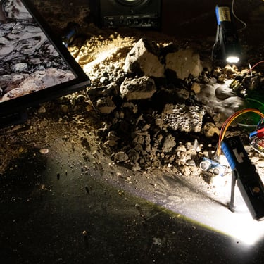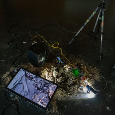 For MUD Talks, River Keer was chosen as the host. Where Mud is a point of convergence, expanding on the intelligent interactions between mud, water, and machine. The object/machine functions as a non-human actant, translating the dialogue for other entities. Posing the question: “When a dialogue is initiated, how can this conversation be amplified within a posthuman condition?” Through translation, “speech” extends beyond human knowledge—an intimate exchange expressed through the utterances of River Keer’s tidal interactions with the mud-scape.
